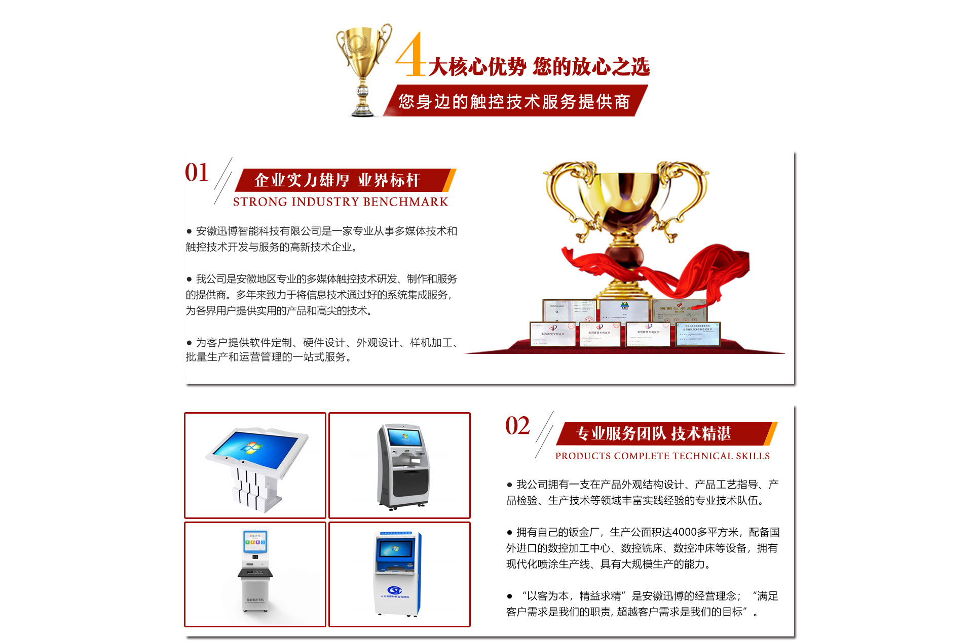 迅博科技 位于中國科教城---合肥市,地處合肥市肥西縣湯口路與皋城路交口西北角人民萬福產業(yè)園一期12棟,是一家計算機信息領域的高新技術企業(yè)公司,全心全意服務于信息化建設,做信息化提供商,全力打造信息時代新模式。引進了現(xiàn)代企業(yè)管理模式和完善的競爭、激勵機智,既具備國有企業(yè)的信譽,又兼?zhèn)渑ζ床⒁恢孪蛏系木瘛Q覆┛萍?擁有多項軟件著作權證書和多項硬件技術證書同時也是一家高新技術企業(yè),注冊資本達500萬,辦公面積近1500平米,同時有合資在杭州成立自己的4000多平米的鈑金廠,公司擁有一支實力、富有經(jīng)驗的計算機和信息技術隊伍和市場營銷隊伍,技術人員都有很強的背景和豐富的實踐經(jīng)驗。一貫注重與...